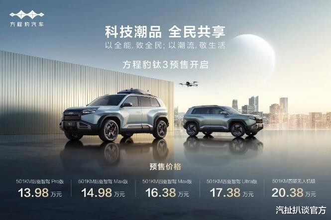 方程豹品牌在诞生之初曾专注于高端市场,首款车型豹5定价最初就锁定在30万元级别,而钛3的预售价则直接下探至13.98万-20.38万元区间,这一策略精准覆盖了主流家庭用户的购车预算范围。